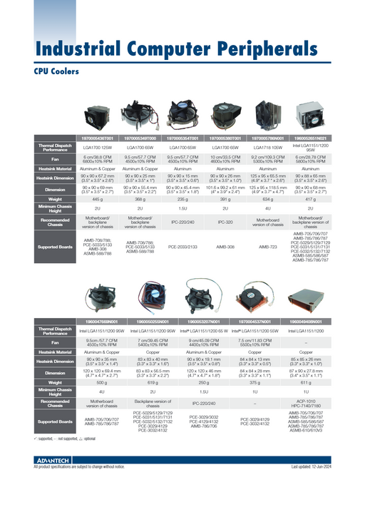 AdvantechHigh-performance LGA1200 CPU cooler supporting up to 125W TDP. Designed for 2U/4U industrial chassis, ensuring efficient thermal management in comp...